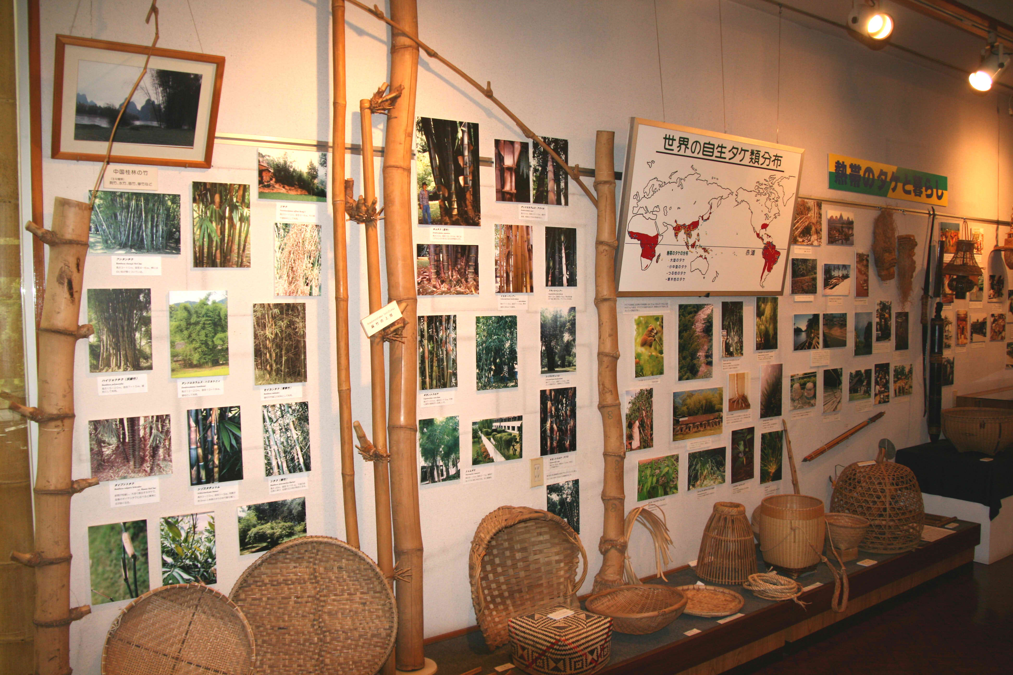 竹笹の標本、民芸品、生活用具、茶道具炭など竹に関するあらゆる分野の展示物があります。